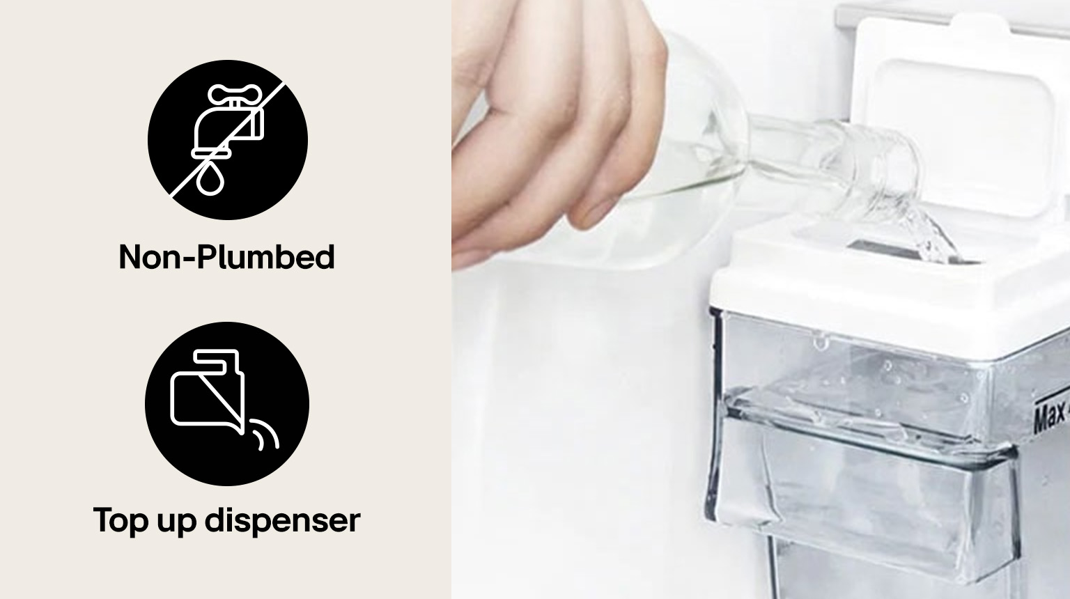 LG offers the choice of plumbed and non-plumbed fridge models. A plumbed fridge is connected directly to the water supply to feed the ice and water dispenser. A non-plumbed fridge has a built-in refillable water tank connected to the door-mounted dispenser. Simply keep the water tank topped up to enjoy the luxury of chilled water on tap.