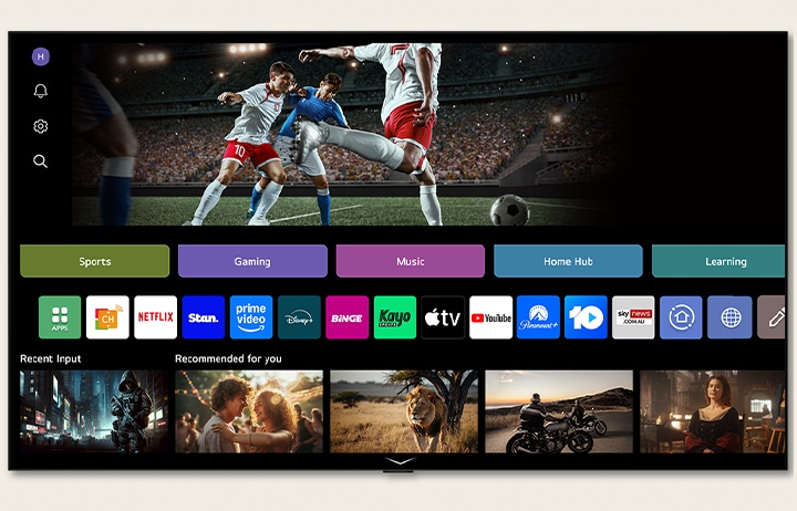 *Available on 2025 LG TV models. Some features require an internet connection. Depending on language, voice clarity and available content or source material, voice commands may not always deliver or respond to the requested command.