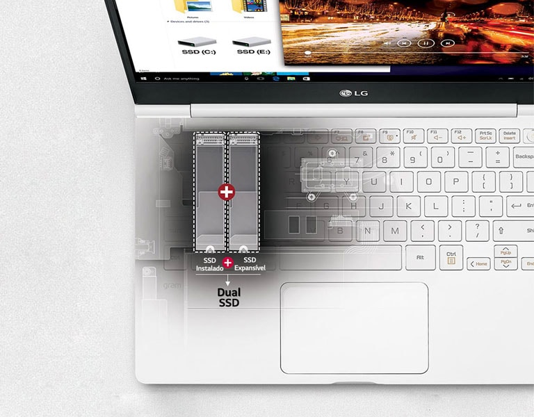 3) Para instalar uma SSD adicional, as placas superior e inferior do Gram precisam ser removidas. Dessa forma, é necessário visitar o Centro de Serviços da LG para instalar uma SSD adicional, e quaisquer problemas que ocorram por ignorar as instruções acima são de responsabilidade do cliente.