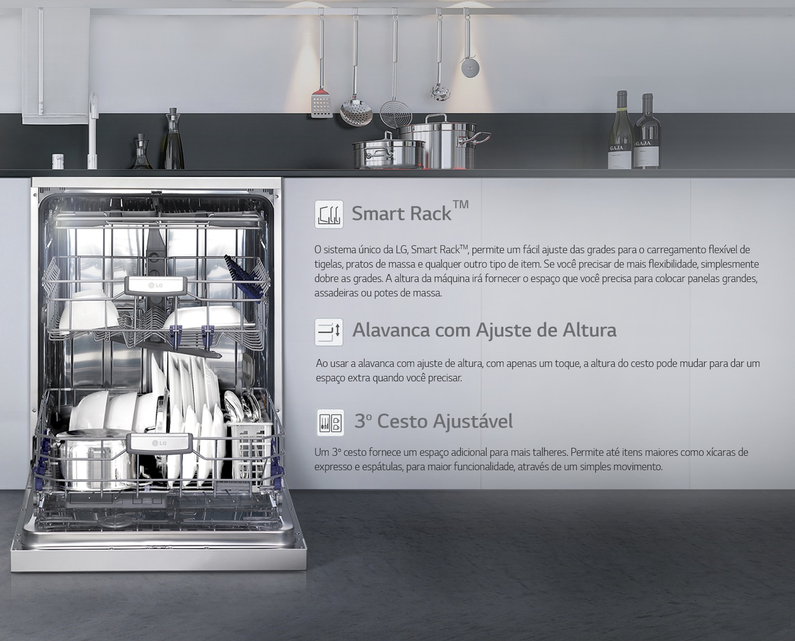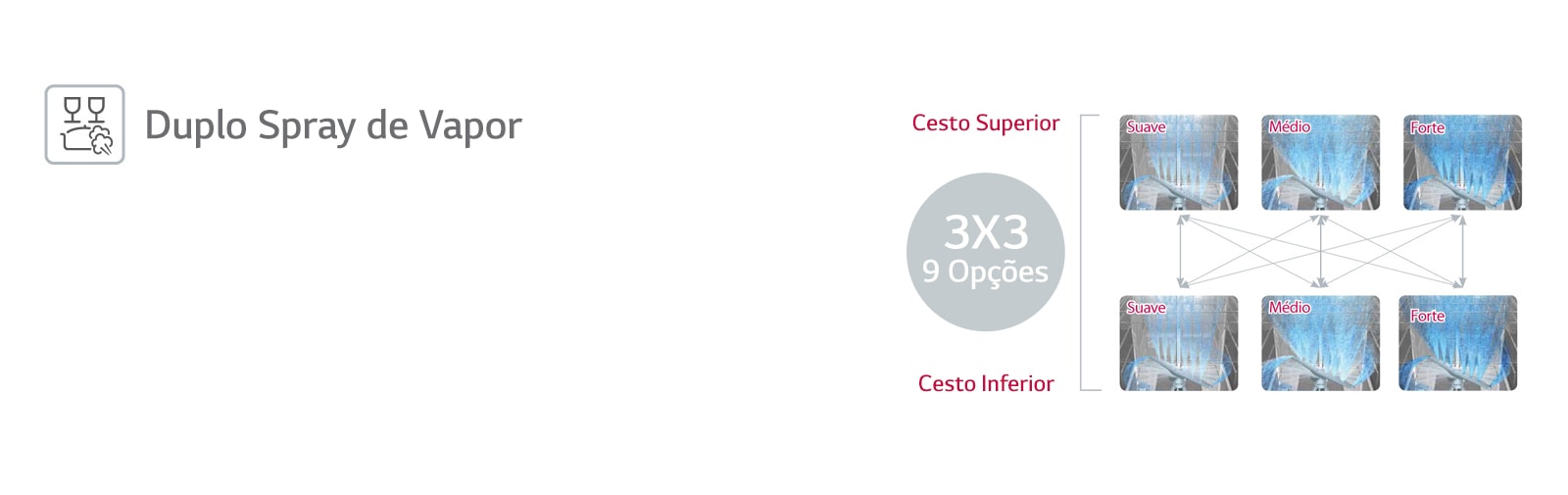 A cada toque no botão a intensidade do spray da Lava Louça muda entre fraco, médio e forte