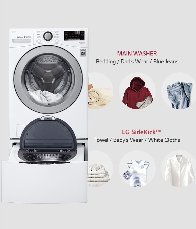 Upgrade your laundry room when you bundle an LG front-loading washer, LG SideKick™, LG dryer and LG dryer pedestal storage. It's the laundry dream team you've been waiting for.