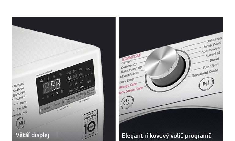 LG nabízí nabídku moderních neutrálních barevných variant, abyste zajistili, že najdete pračku, která se buď hodí ke stávajícím spotřebičům, nebo poskytne stylový kontrast. Vyberte si z následujících barev: Bílá, tmavá ocel nebo stříbrná.