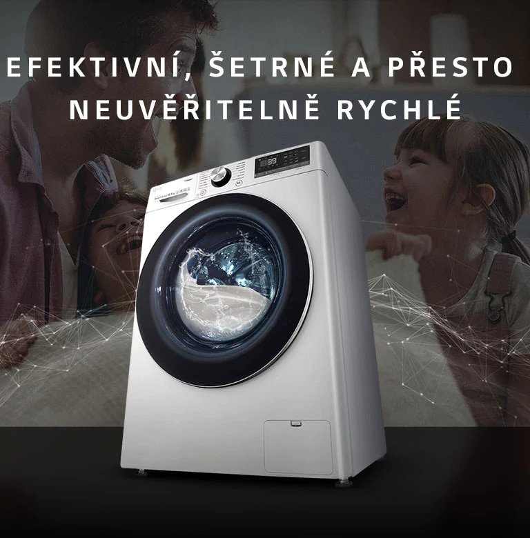 *Testováno společností Intertek, v březnu 2019. Na základě testovacího protokolu IEC 60456, verze 5.0. Program TurboWash 39 s 5kg náplní podle IEC ve srovnání s běžným pracím programem Bavlna se zapnutou přídavnou funkcí TurboWash (modely (F4V9RWP2W a FC1450S2W). Výsledky se mohou lišit v závislosti na okolních podmínkách.