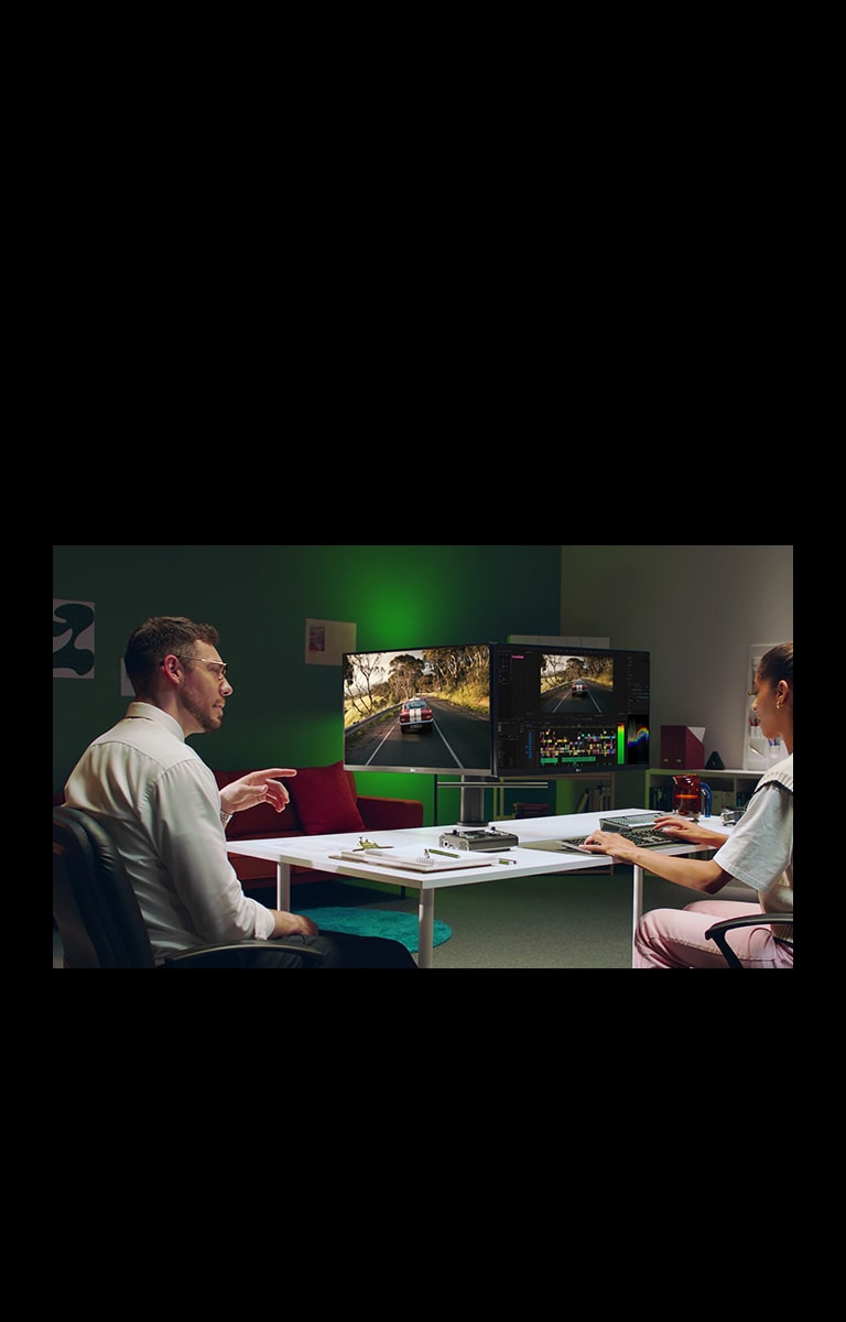Ausgerüstet mit USB Type-C™ und DisplayPort unterstützt der LG Ergo Dual Monitor mit QHD die Daisy-Chain-Einrichtung. So können Sie einen produktiven Arbeitsplatz einrichten, indem Sie zwei Monitore und einen Laptop über ein DP-Kabel und ein USB-Typ-C™-Kabel anschließen. Dank der USB-C™-Technologie können Sie den angeschlossenen Laptop aufladen und gleichzeitig Display-Informationen und Daten übertragen.