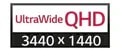 Der 21:9-QHD-Bildschirm (3.440 x 1.440) ist 2,4-mal breiter als ein 16:9-Full-HD-Bildschirm (1.920 x 1.080) und hat 880 Pixel mehr als ein 16:9-QHD-Bildschirm (2.560 x 1.440).