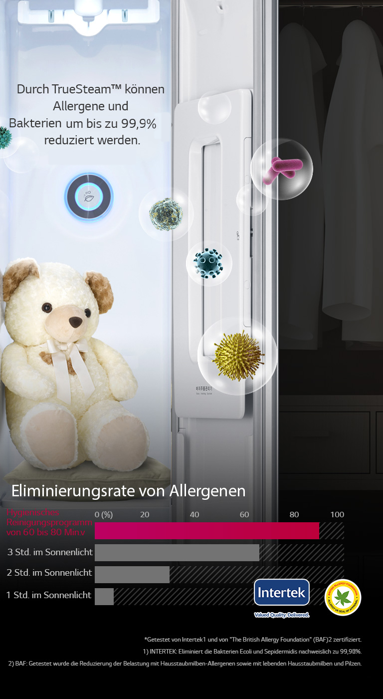 * Zertifiziert von VDE, reduziert Bakterien (E. coli und S. aureus) im Sanitary - Normal Programm um bis zu 99,9%.