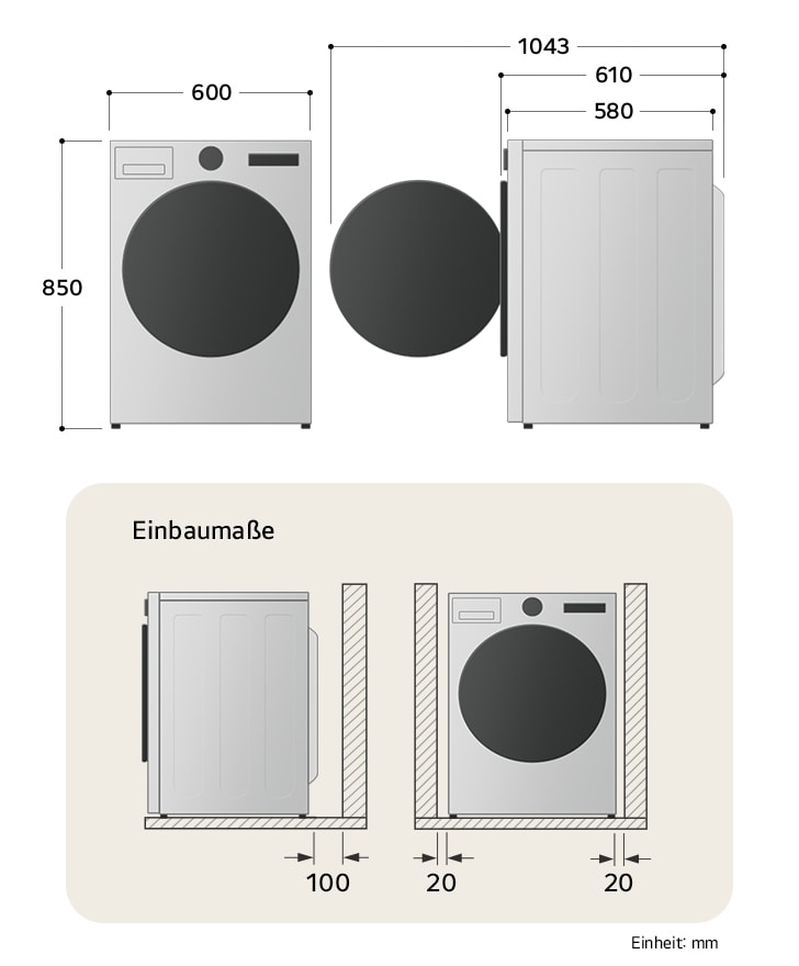 Ansicht des Wäschetrockners mit Hervorhebung der Tür