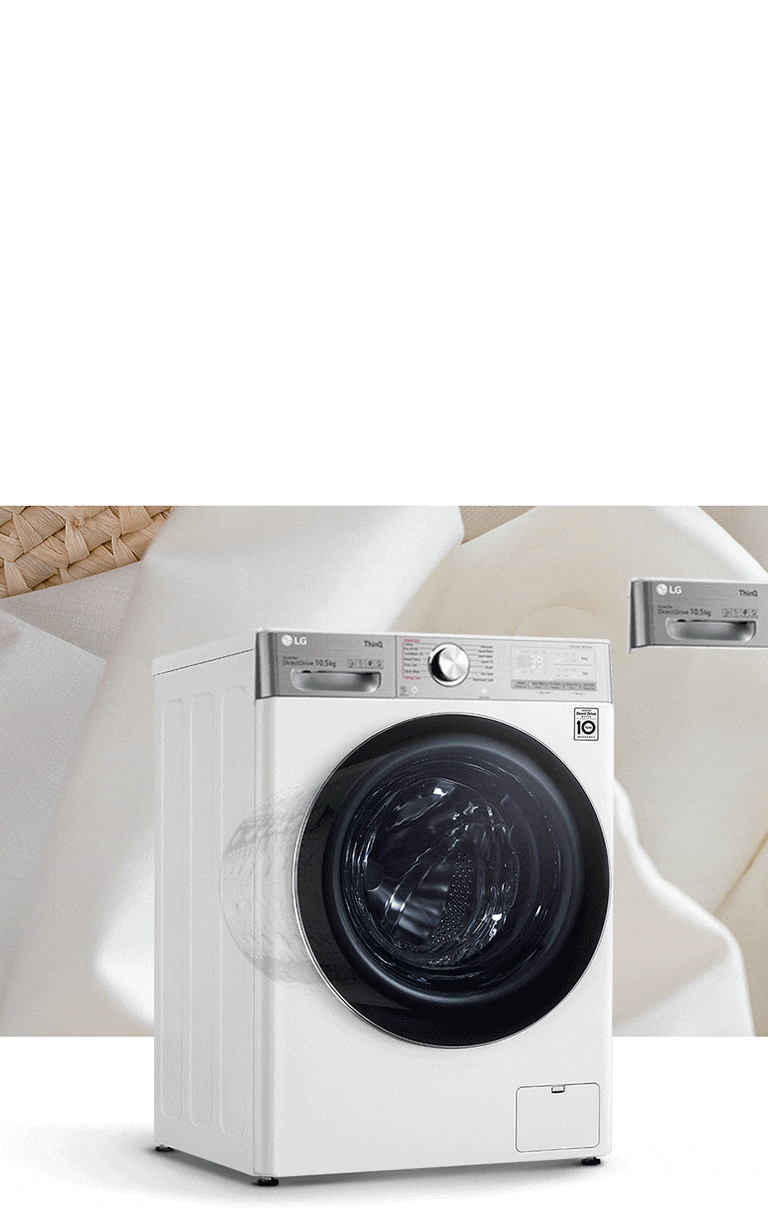 * Testet af Intertek i marts 2019. Bomuldsprogrammet med 2 kg undertøj sammenlignet med LGs konventionelle bomuldsprogram (F4V9RWP2W vs. FC1450S2W). Resultaterne kan være forskellige afhængigt af tøj og miljø.