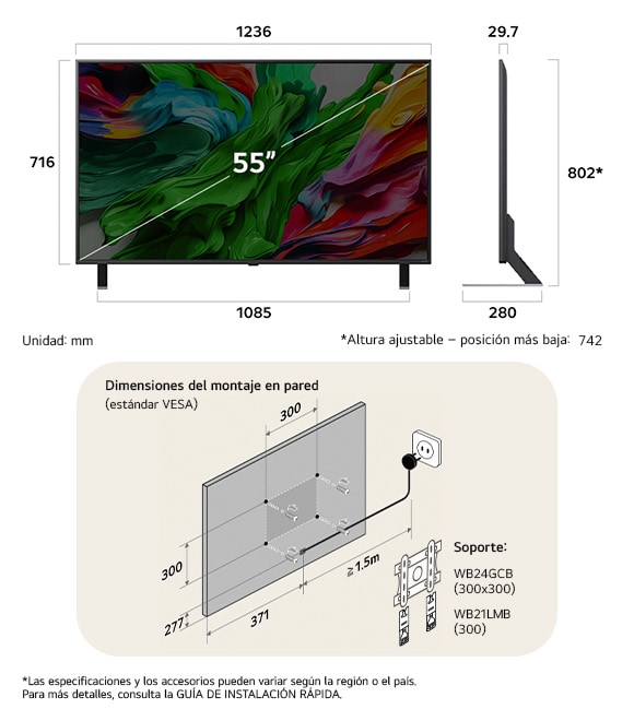 *Las especificaciones pueden variar según las pulgadas, los modelos y la región.