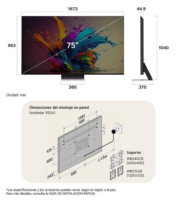 Dimensiones TV Sin peana (AnxAlxPr mm)