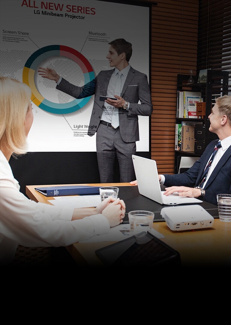 Our range of projectors for businesses will provide your meeting room with a high performance piece of equipment to wow during your presentations. Find out all about LG's cinebeam projectors for all room sizes, from portable small ones to our most powerful LG ProBeam 4K laser projectors.