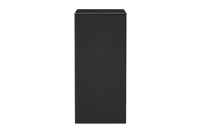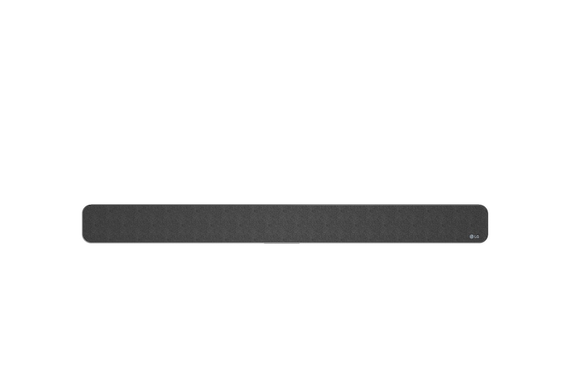 Particolare del lato destro della LG Soundbar con logo LG nell’angolo destro inferiore. Icone di connettività mostrate sopra il prodotto.