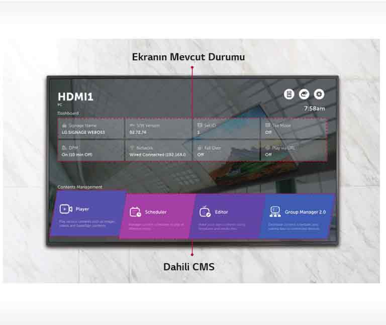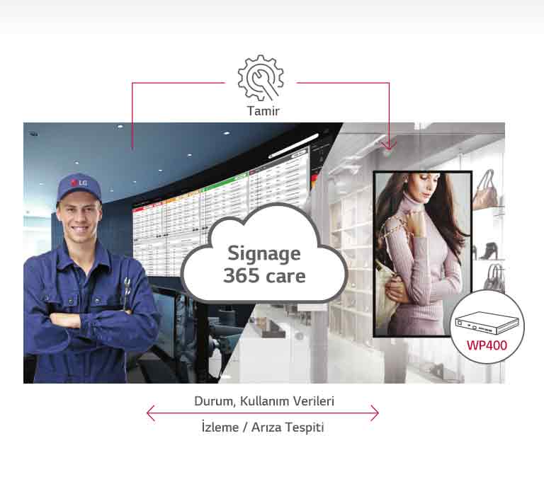 *"Signage 365 Care" servisinin kullanılabilirliği bölgeye göre değişebilir, bu nedenle lütfen daha fazla detay için bölgenizdeki LG satış temsilcisiyle iletişim kurun.