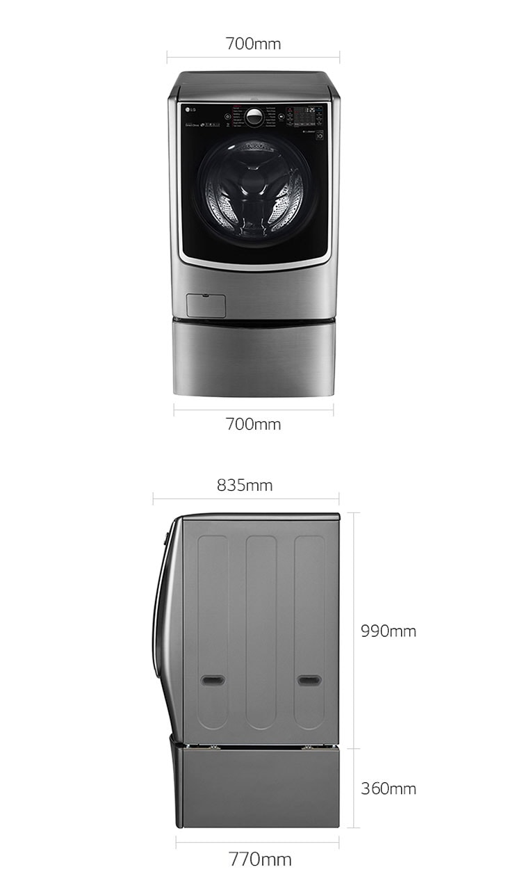 LG TWINWash™, Washer & Dryer, 23.5 / 12 Kg, 6 Motion Direct Drive, TurboWash360, Steam™, ThinQ