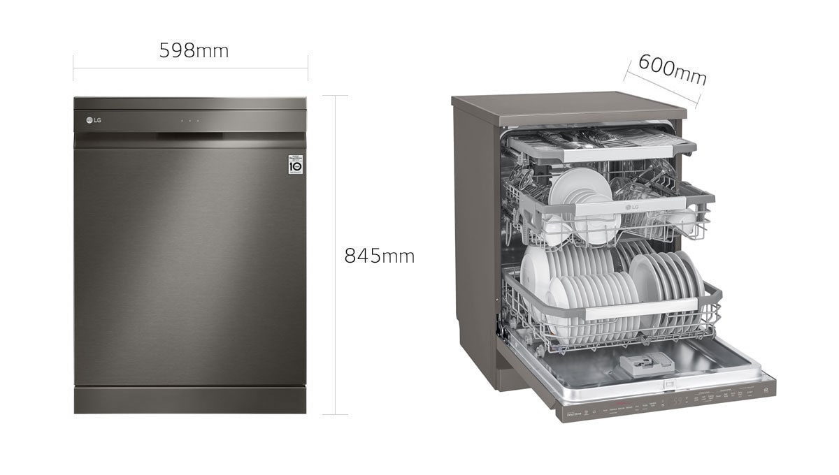 غسالة صحون إل جي بالبخار ™QuadWash، محرك الدفع المباشر، تقنية EasyRack™ Plus، إعدادات المكان14، تقنية ThinQ