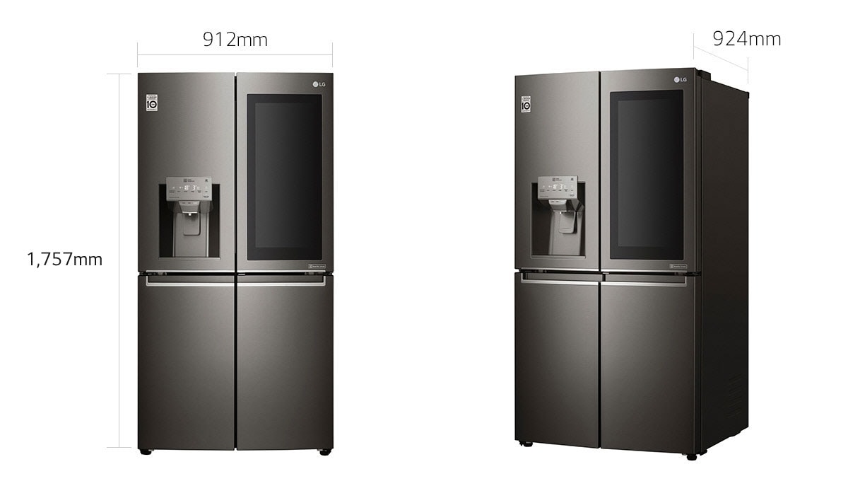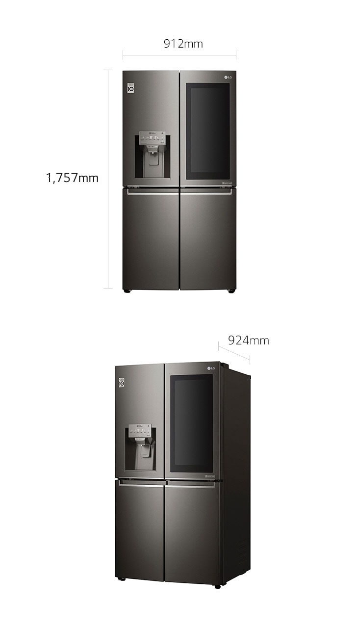 ثلاجة ذات بابين متجاورين، تقنية ™InstaView Door-in-Door، لون أسود غير لامع، تقنية ™+Hygiene FRESH، تقنية ThinQ