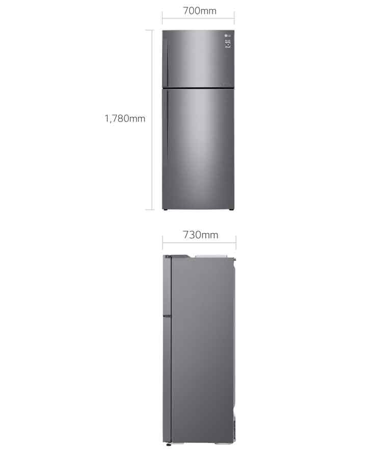 ثلاجة بمجمدة علوية، فضي بلاتيني، ضاغط طولي عاكس، تقنية ™⁺DoorCooling، تدفق هواء متعدد