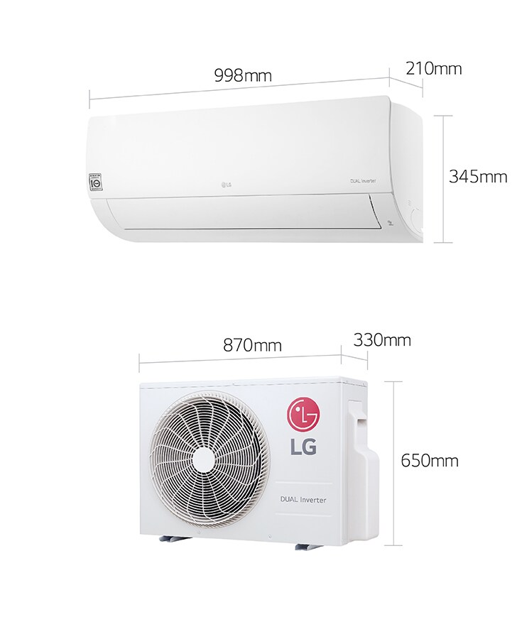 | الأبعاد | الوحدة الداخلية 998 × 345 × 210 / الوحدة الخارجية 870 × 650 × 330 | |