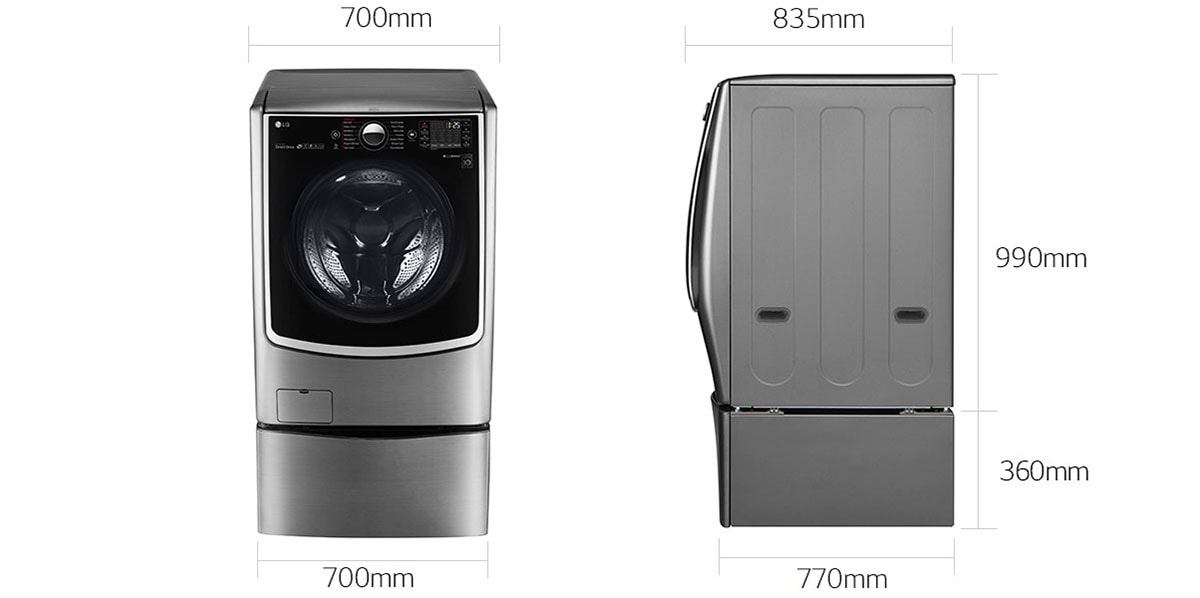 غسالة ™TWINWash من إل جي، غسالة ومجفف، 12/23.5 كجم، محرك يعمل بالدفع المباشر 6 حركات، تقنية TurboWash360، تقنية ™Steam، تقنية ThinQ