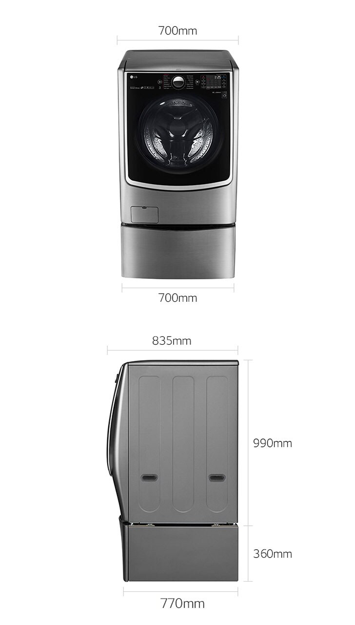 ™LG TWINWash، غسالة ومجففة، 21.5 / 10 كجم، تقنية الدفع المباشر 6 حركات، Steam™، TurboWash360، ThinQ