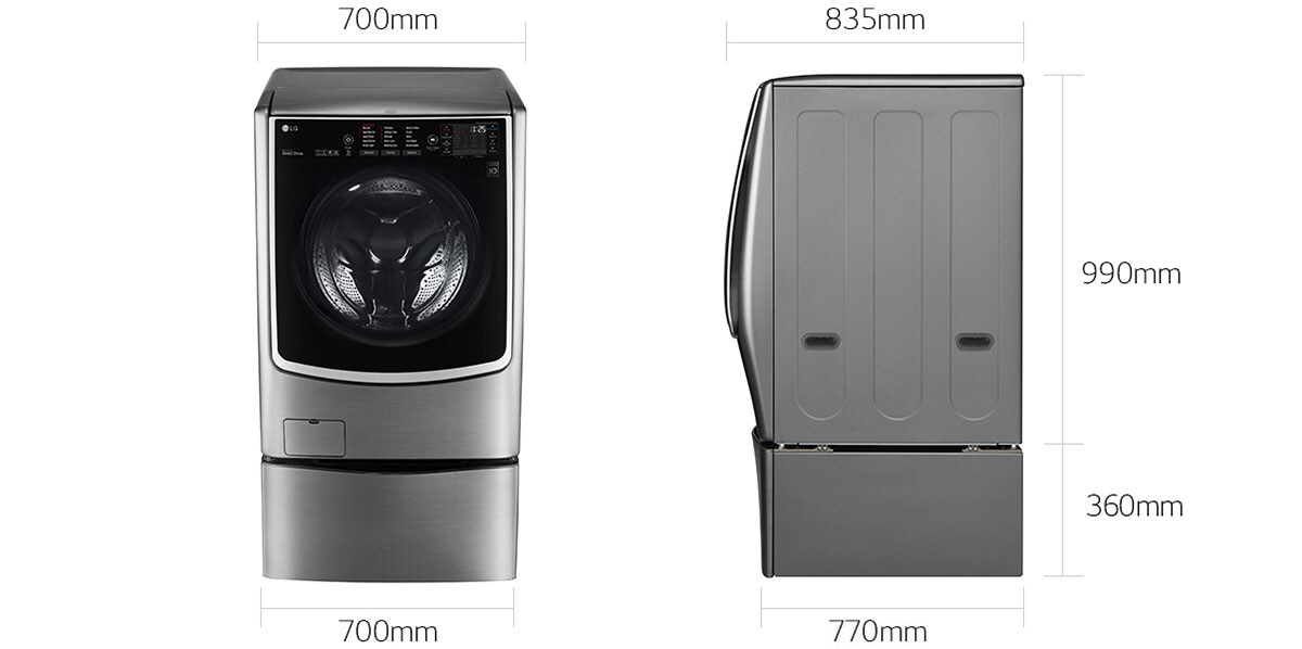 إل جي ™TWINWash ، غسالة ومجففة، 7/12 كجم، محرك الدفع المباشر 6 حركات، تقنية ™TrueSteam، تقنية ThinQ
