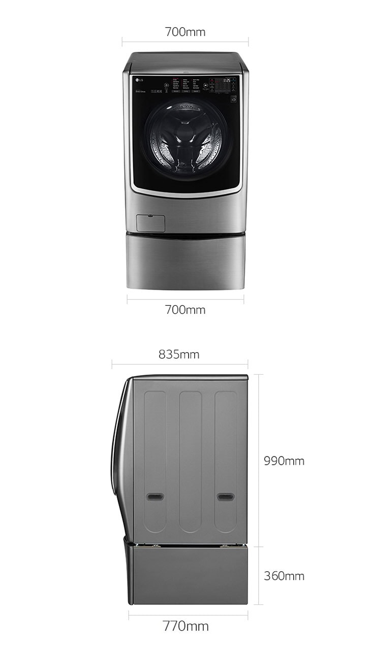 غسالة ™TWINWash من إل جي، غسالة ومجفف، 12/23.5 كجم، محرك يعمل بالدفع المباشر 6 حركات، تقنية TurboWash360، تقنية ™Steam، تقنية ThinQ