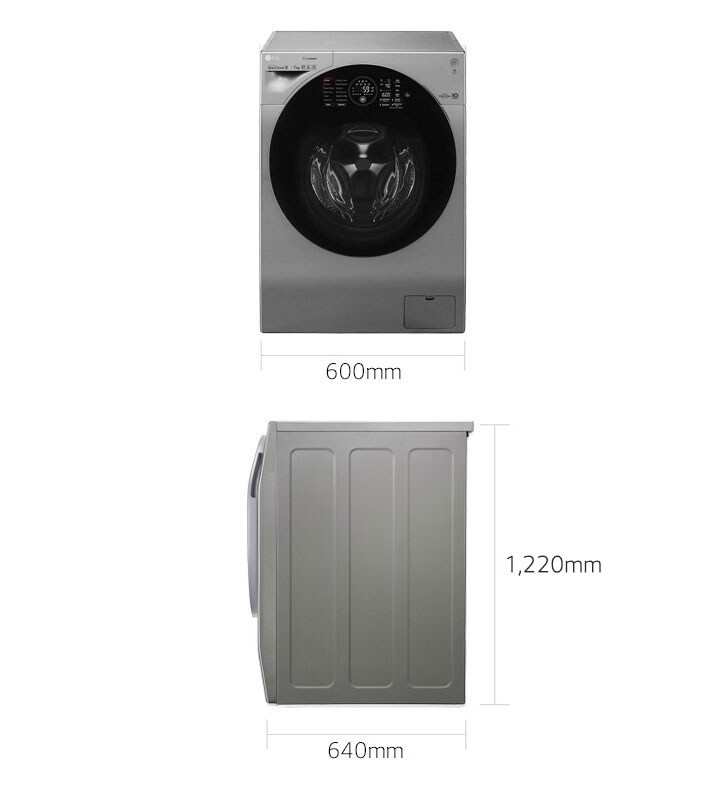 غسالة ومجففة، 5/9 كجم، محرك الدفع المباشر 6 حركات، تقنية العمل بالبخار، إمكانية إضافة قطع الغسيل، تقنية ThinQ