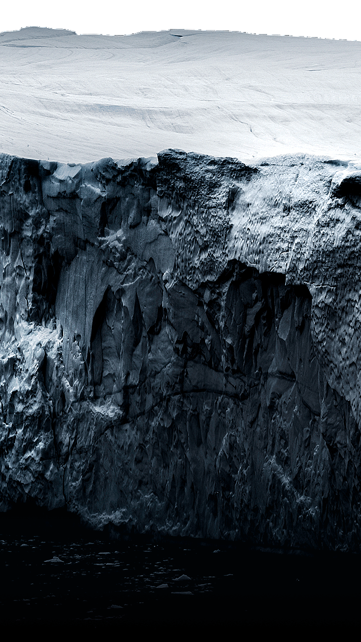 تظهر كلمات 'الأسود الفائق' بخط عريض، ثم يظهر من الأسفل جبل جليدي وعرة ذات أخاديد معقدة تظهر كلمات 'الأسود الفائق' بخط عريض، ثم يظهر من الأسفل جبل جليدي وعرة ذات أخاديد معقدة