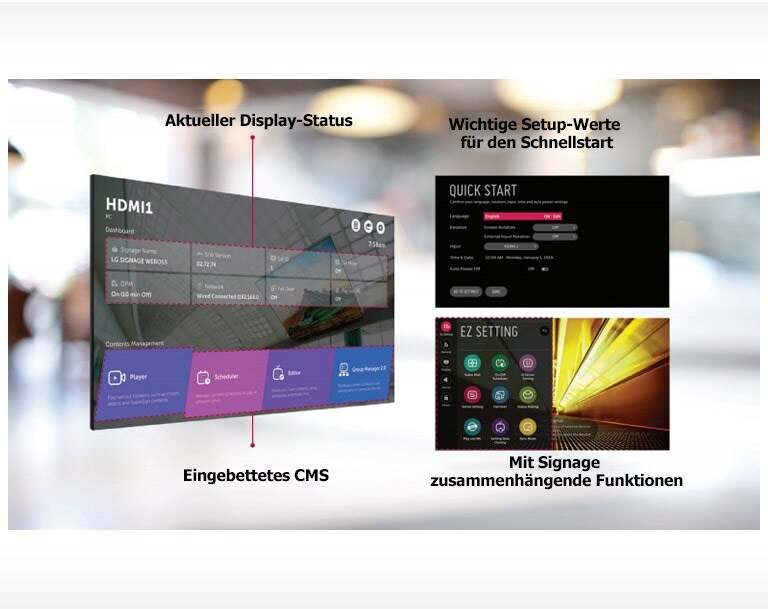 *Die Verfügbarkeit des Signage365Care-Services ist je nach Region unterschiedlich. Wenden Sie sich bitte an den LG-Vertriebsmitarbeiter in Ihrer Region, um weitere Einzelheiten zu erfahren.