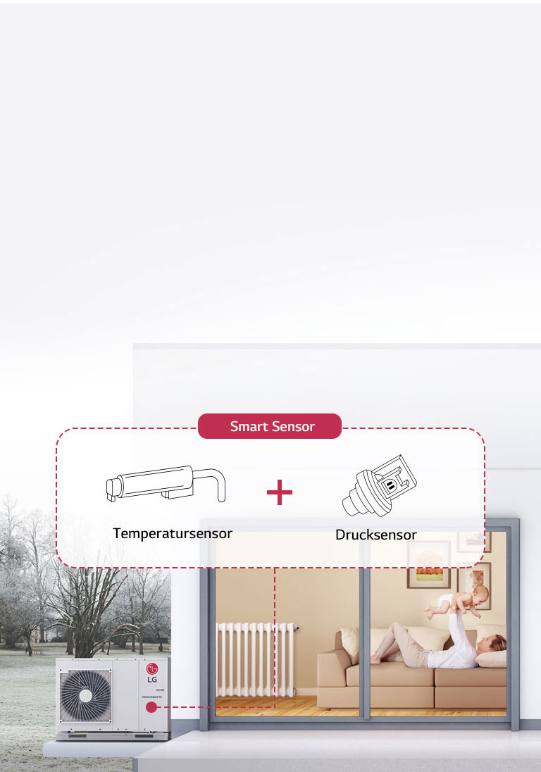 Der einzigartige Smart Sensor von LG mit Druck- und Temperaturregelung erfasst den Druck direkt und ermöglicht so ein schnelleres und genaueres Reagieren auf Schwankungen.