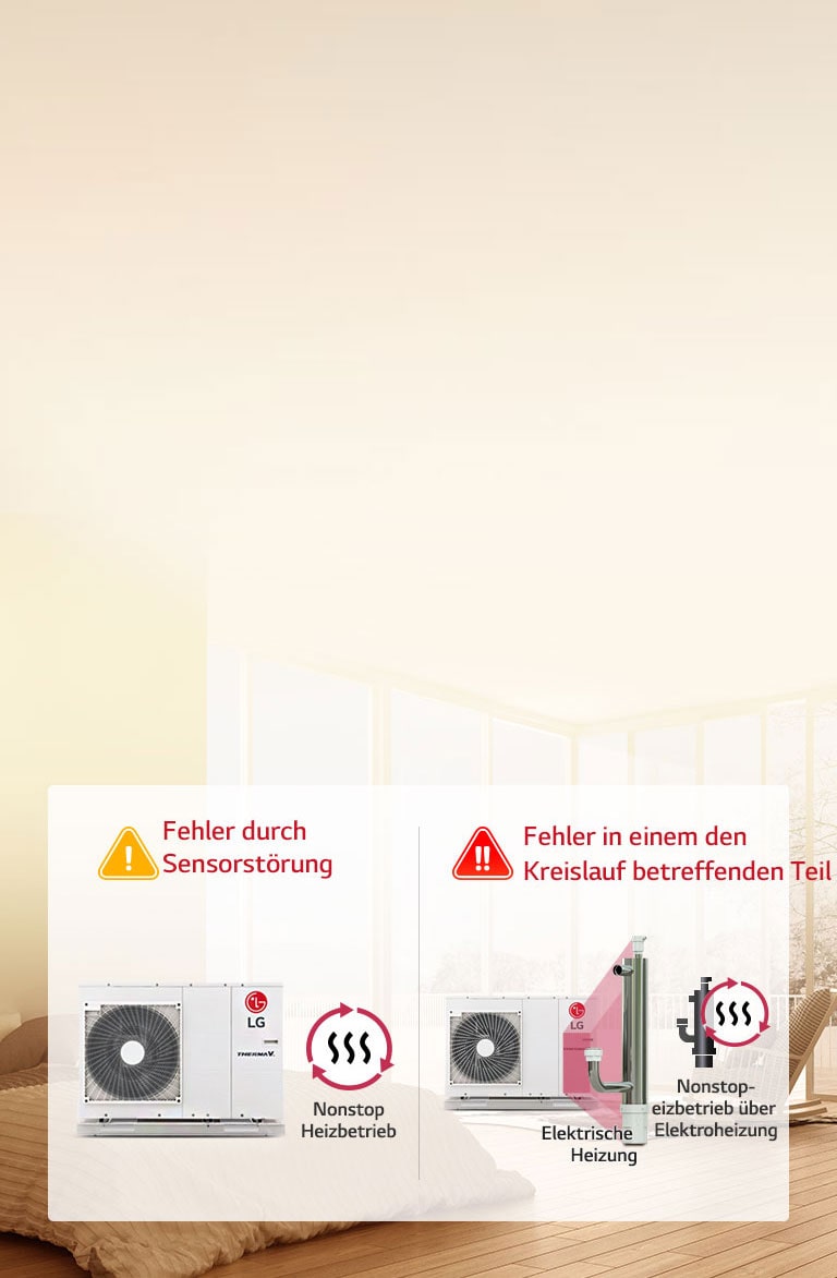 Selbst im Fall eines plötzlichen Geräteausfalles setzt THERMA V die laufende Wärmeerzeugung fort, bis eine ordnungsgemässe Wartung stattfindet. Bei Störungen an den Kreislauf betreffenden Teilen, springt die elektrische Heizung ein um den Heizbetrieb aufrechtzuerhalten.