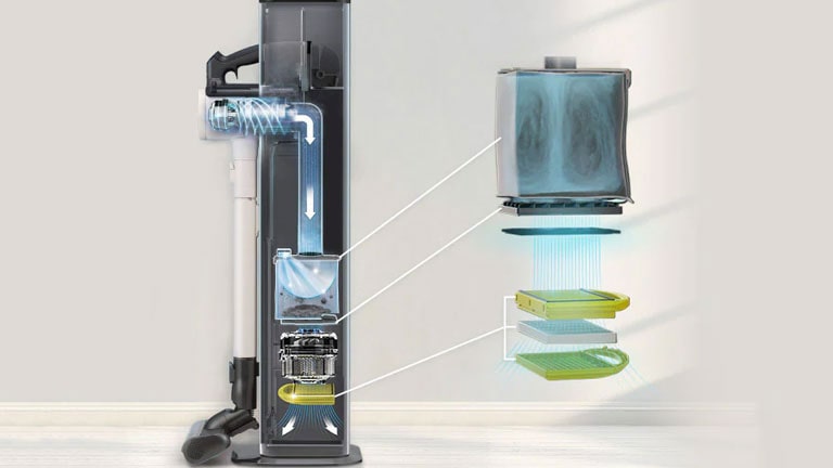 *The test run by SLG was based on IEC 62885-2 and EN 60312-1, the dust retaining capability at 0.5㎛ ~ 4.2㎛ particle size in Turbo mode was tested and averaged 99.999% ('Excellent' Grade, 5-Star). Dust retaining capability may vary depending on operating environment.