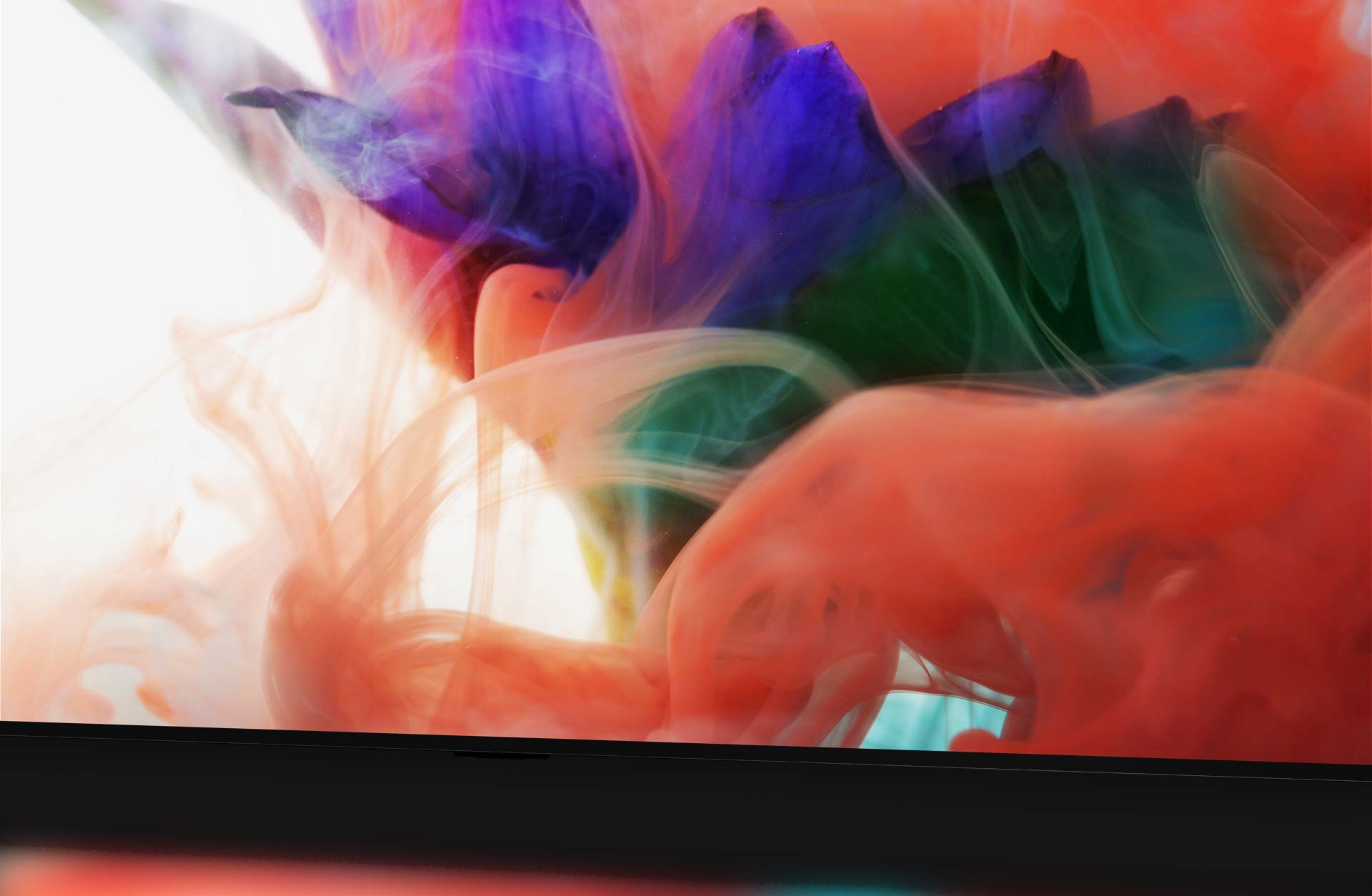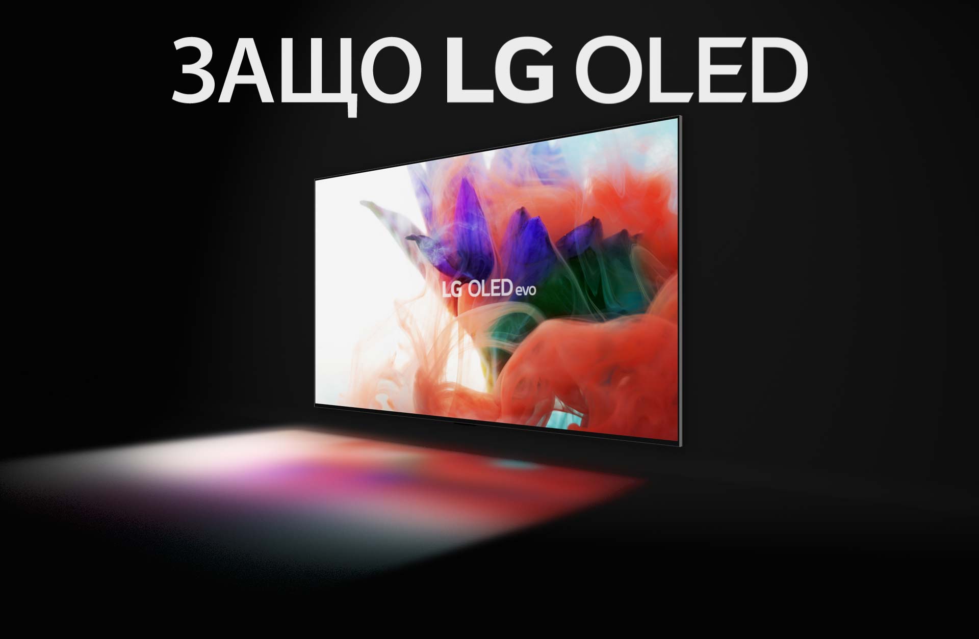 LG OLED evo TV се появява от сенките, след което изпълва екрана с ярка и абстрактна флорална картина, насложена с текст „Това е разликата в OLED evo“
