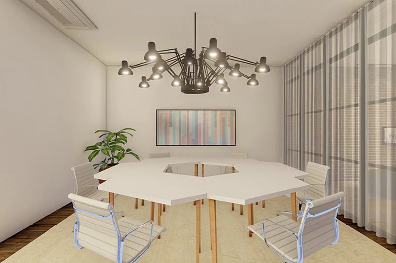 O conforto térmico do escritório ficou por conta da eficiência dos equipamentos de ar condicionado LG. No espaço multiuso, a escolha foi pelo Cassete Redondo, equipamento com design inovador e moderno, especialmente desenhado para ficar aparente, imprimindo um clima industrial chic ao ambiente.
