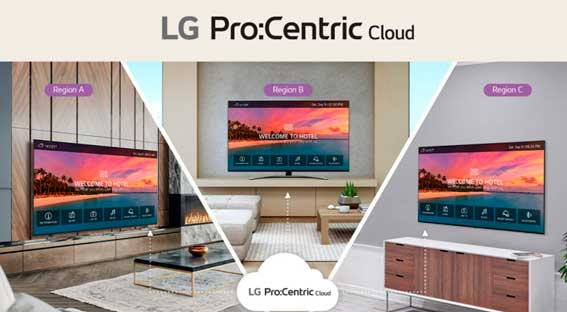 O LG Pro:Centric Cloud é a solução de hotelaria baseada em nuvem da LG que personaliza a experiência do hóspede, integra serviços via API, oferece Web App por QR Code, streaming OTT e monitoramento remoto.