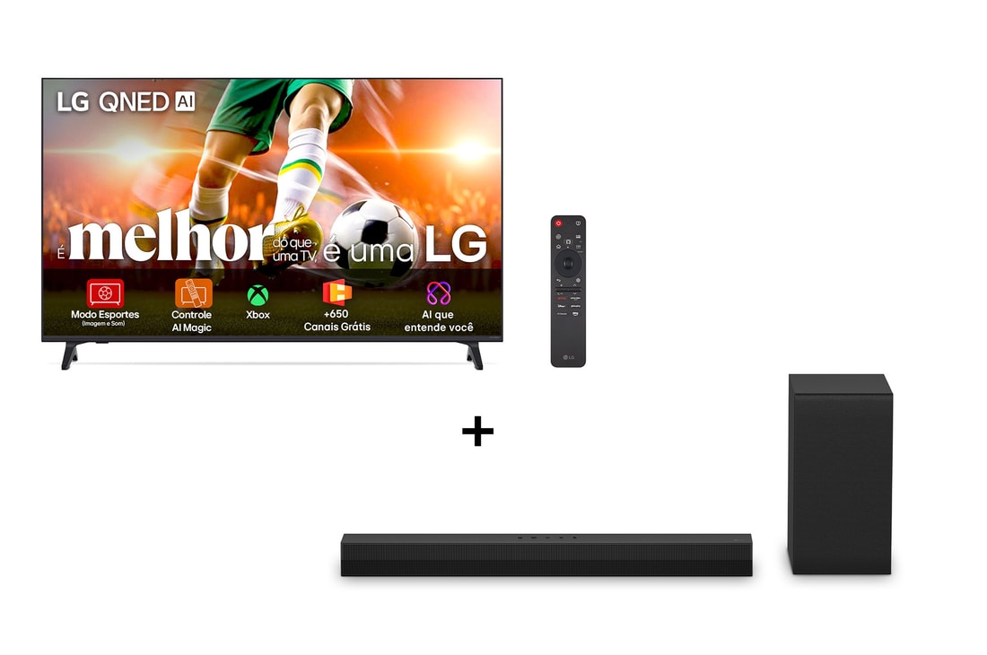 Combo Smart TV 4K LG QNED AI QNED70 de 50 polegadas 2025 + Soundbar S40T 300W RMS, 2.1 Canais, Dolby Digital