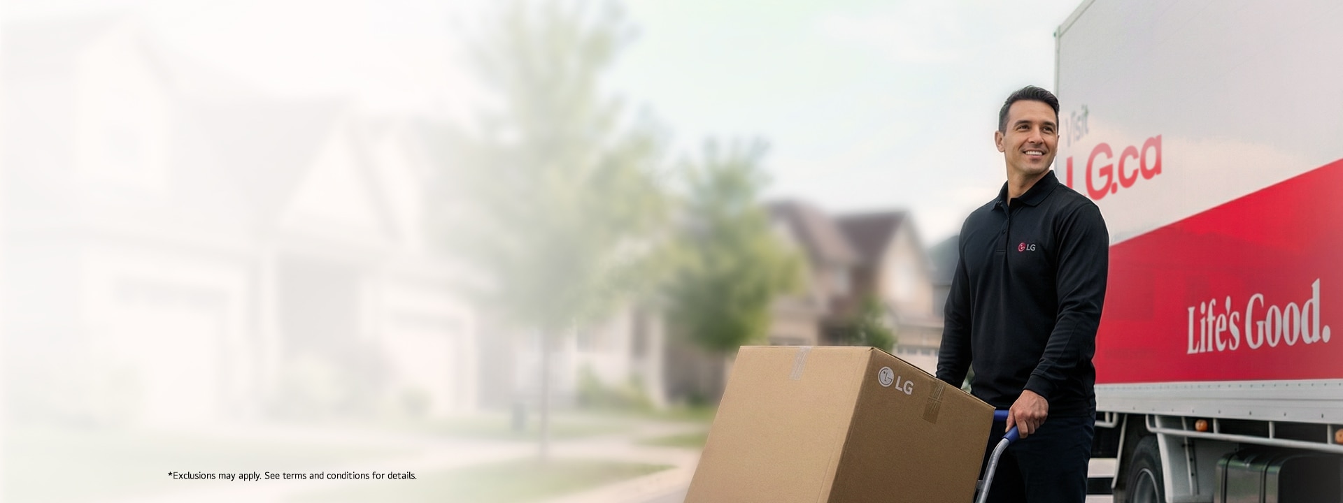 1Current as of 06/20/2025. Available with purchase of select LG products on LG.ca and is subject to change without notice. Premium/Express Delivery is only available with the following products: washers, dryers, the WashTower™, the Styler®, refrigerators, ranges, range hoods, cooktops, wall ovens, washer dryer combos, massage recliner, dishwashers and TVs larger than 55”. Premium Service includes professional installation requiring plumbing, gas or electrical work, performed by a third party licensed professional. will be reviewed with you before installation. Express Service includes basic installation connecting to existing electrical outlet(s), vents and water supply using connectors which are included with the appliance and excludes any alterations to your home, such as carpentry, plumbing, gas, or electrical work. You are responsible to ensure the home has the required utilities, connections, and parts (that are not included with your new appliance (e.g. wall mount bracket)) ready when the installation personnel arrive. Haul-away is only available for the following residential appliances: refrigerators (36” wide or less), TV’s, washers, dryers, ranges, and dishwashers. The old appliance must be the same appliance type and in the same space as the new appliance being delivered. The old appliance must be clean on the outside, empty and disconnected from electricity, gas and/or water hookups. No obstacles can be in the path of removal including but not limited to furniture, narrow doorways or stairways, toys, pets, snow, ice, etc. LG will not disassemble Your old appliance prior to removal. Your old appliance will be recycled in accordance with applicable environmental guidelines. Other conditions apply.