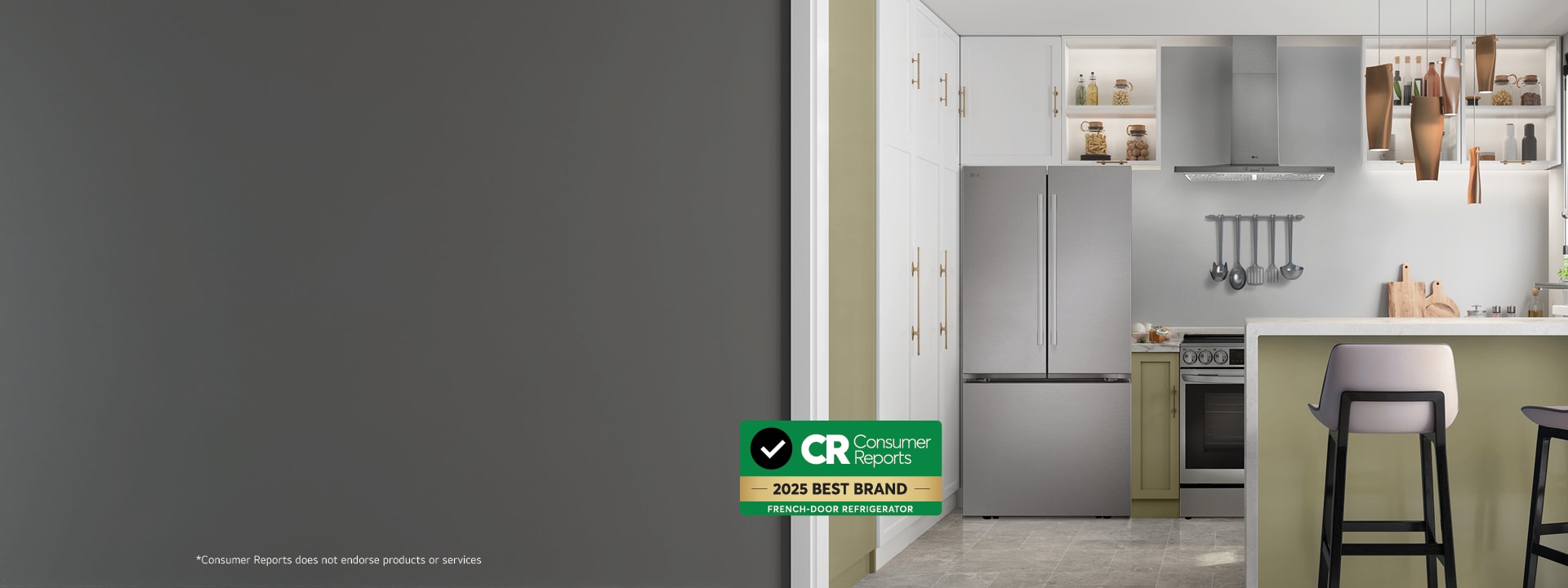 LG counter depth refrigerators sit flush with your kitchen work surface for a seamless fit. Whether you choose a side-by-side or French door counter depth fridge, they give a built-in look – without the cost of a built-in fridge.