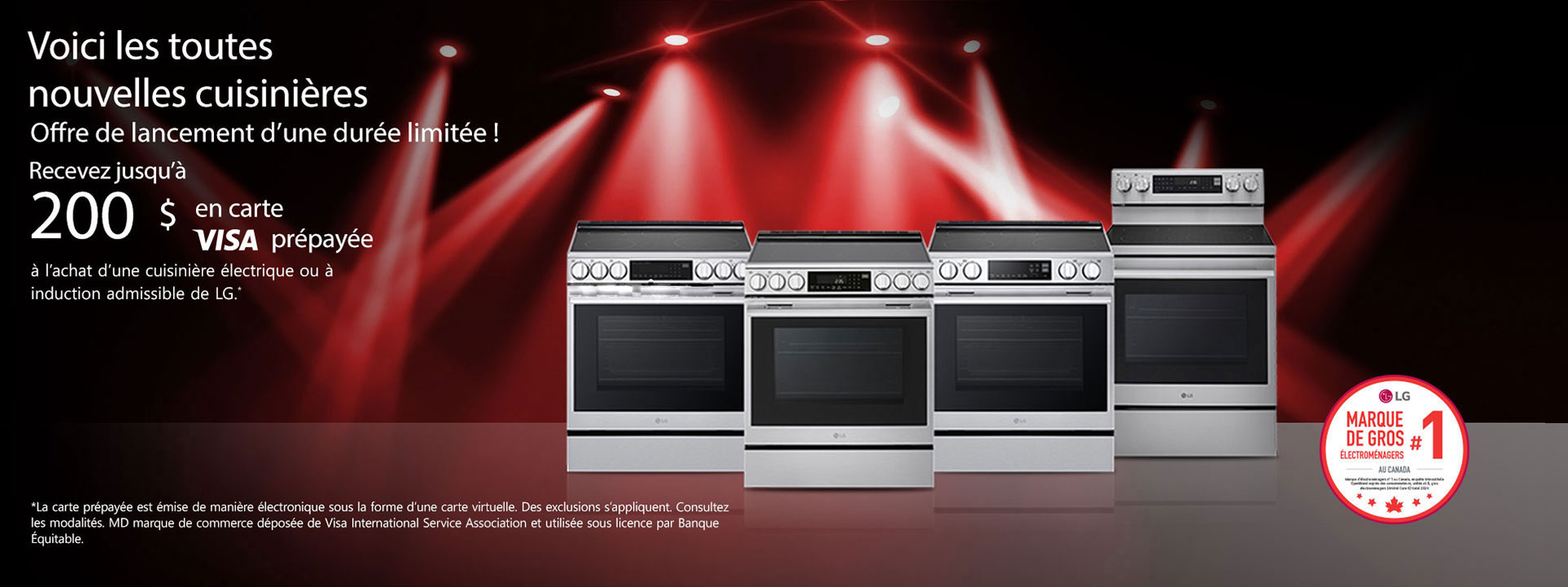 Recevez jusqu’à 200 $ en carte VISA prépayée à l’achat de cuisinières admissibles de LG entre le 28 août 2025 et le 1er octobre 2025