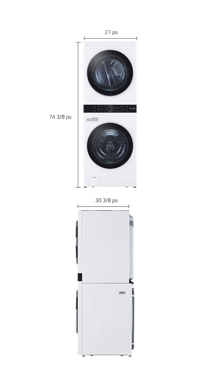 L’élégant appareil en une seule unité WashTowerMC de LG est doté des mêmes capacités et fonctionnalités que les appareils pleine grandeur, mais occupe la moitié de l’espace*. Contrairement aux panneaux de commande des appareils superposés classiques, le panneau Centre ControlMC exclusif à LG est parfaitement positionné pour que les commandes de la laveuse et de la sécheuse se trouvent exactement à la bonne hauteur.
