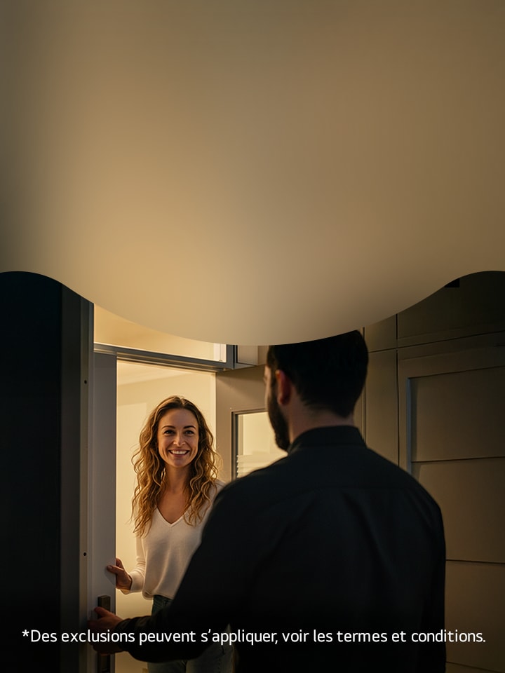 1 À jour en date du 16 mars 2026. Offert à l’achat de produits LG sélectionnés sur LG.cca et sous réserve de changement sans avis préalable.La livraison par exprès / soignée n’est offerte que pour les produits suivants : laveuses, sécheuses, WashTowerMC, StylerMD, réfrigérateurs, cuisinières, hottes, tables de cuisson, fours muraux, combinés laveuse-sécheuse, fauteuil de massage et lave-vaisselle, et téléviseurs de plus de 55 po. Toute installation professionnelle nécessitant un travail de plomberie, de raccord au gaz ou électrique sera exécutée par un tiers professionnel licencié et sera discutée avec vous avant l’installation. L’installation de base englobe le raccordement à une ou des prises électriques, à des évents et à l’alimentation en eau existants à l’aide des connecteurs fournis avec l’électroménager et fait exclusion de toute modification à votre foyer, notamment tout travail de menuiserie, de plomberie, de raccordement au gaz ou électrique. Il vous en revient d’assurer que les services publics, les raccords et les pièces nécessaires (qui ne sont pas inclus avec votre nouvel électroménager (p.ex. boyau d’apport en eau, conduite)) soient présents dans votre foyer à l’arrivée du personnel d’installation. Le ramassage n’est offert que pour les électroménagers résidentiels suivants : réfrigérateurs (36 po de largeur ou moins), téléviseurs, laveuses, sécheuses, cuisinières et lave-vaisselle. Le vieil électroménager doit être du même type et occuper le même espace que le nouvel électroménager livré. Le vieil électroménager doit être propre à l’extérieur, vide et débranché du secteur, du raccord de gaz et / ou du raccord d’eau. Aucun obstacle ne peut nuire au retrait, notamment mais non de façon limitative : meubles, cadres de porte ou escaliers étroits, jouets, animaux de compagnie, neige, glace et autres. LG ne désassemblera pas votre vieil électroménager avant son retrait. Votre vieil électroménager sera recyclé conformément aux directives environnementales applicables. D’autres conditions peuvent s’appliquer.