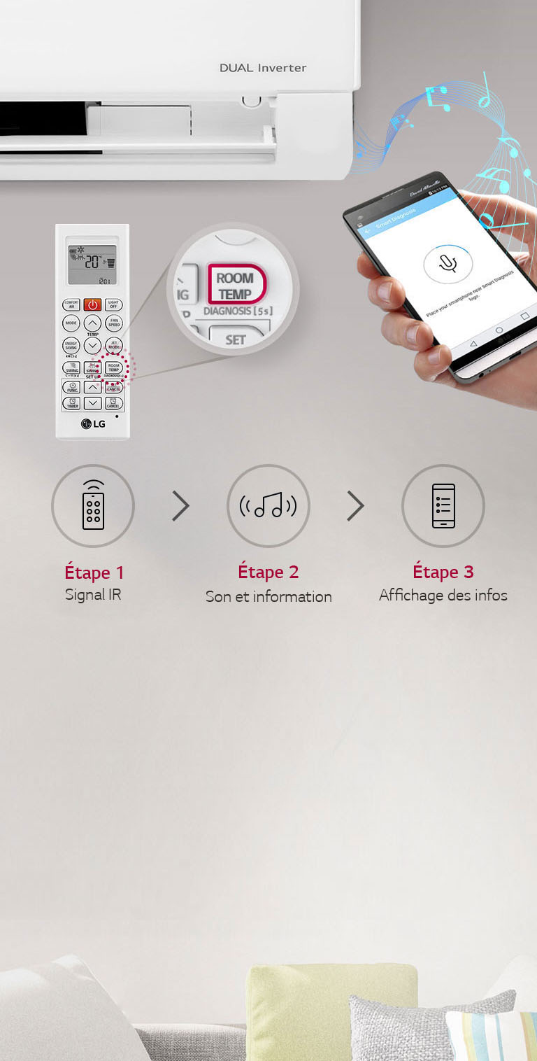 Accédez à votre climatiseur où que vous soyez et en tout temps au moyen d'un appareil doté du Wi-Fi et de l'application de commande d'électroménagers exclusive à LG.