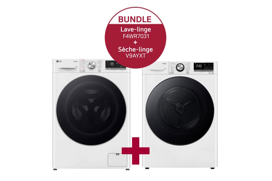 Lave-linge (13 kg, 1 400 tr/min, efficacité énergétique A) avec hublot argenté | F4WR7031 & Sèche-linge avec technologie de pompe à chaleur Dual Inverter V9AYXT