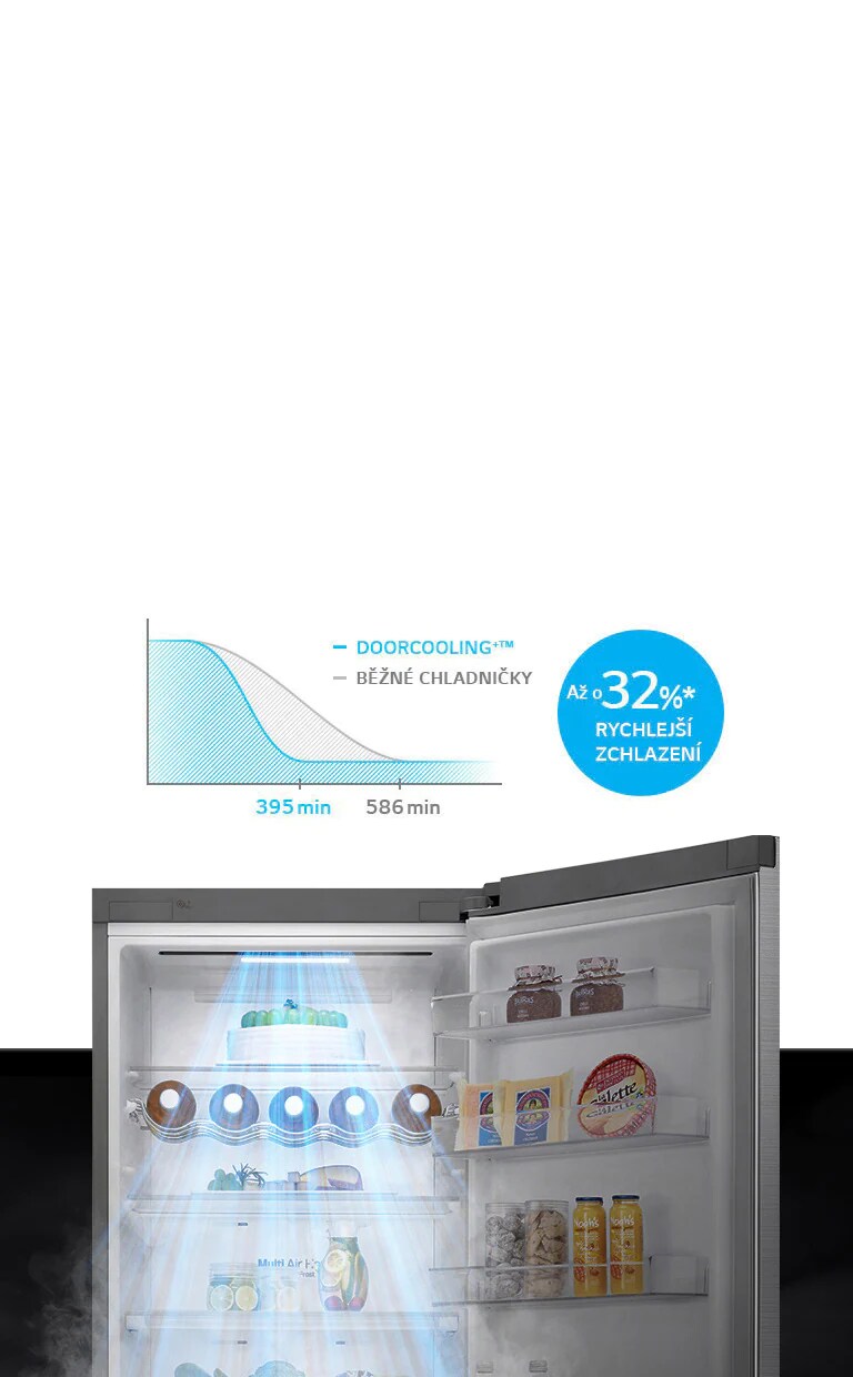 - DoorCooling+™-rychlejší zchlazení a nižší rozdíly teplot- delší čerstvost potravin