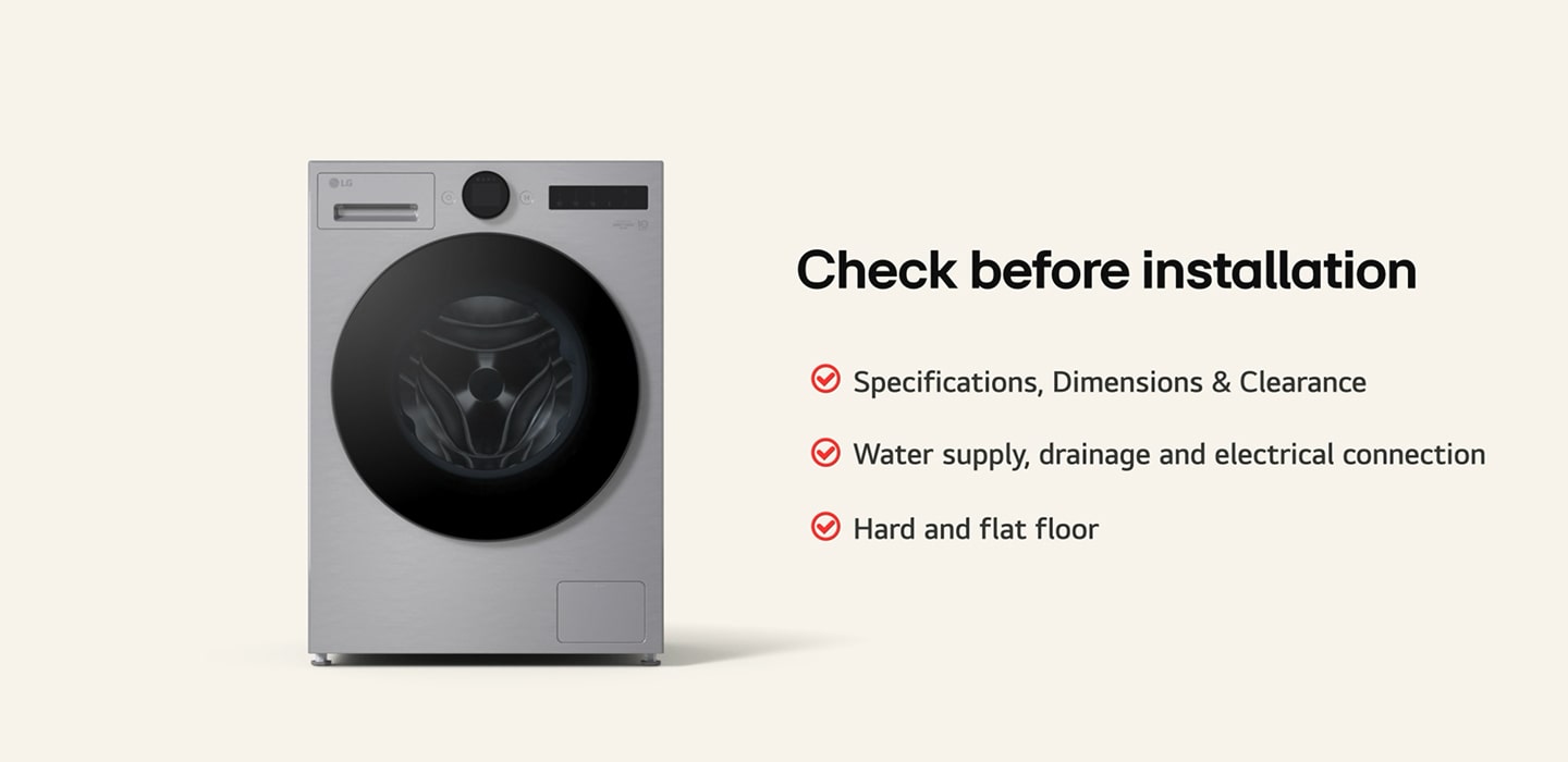 Pračky a sušičky LG lze instalovat do různých prostorů, například do technické místnosti, kuchyně, volného pokoje, na balkon* nebo do vestavné skříně. Vždy zkontrolujte rozměry spotřebiče a ponechte dostatek místa kolem dokola, aby se dvířka mohla plně otevřít. U balkonu vždy zvažte ochranu před povětrnostními vlivy a vlhkostí.