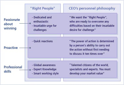 U LG Electronics nazýváme talentované lidi, jež hledáme, "lidi na pravém místě" - jsou to ti, kteří dobře zapadnou do firemní kultury naší společnosti a kteří se rozhodli dosáhnout úspěchu. Jsou oddaní věci a nadšení, s výraznou a neukojitelnou potřebou poprat se s novými úkoly. Jsou proaktivní, vysoce kompetentní a jsou schopni rychlého a rozhodného jednání. Do plnění krátkodobých a dlouhodobých cílů vkládají stoprocentní nasazení, jsou připraveni podávat vždy nejvyšší výkon a spokojit se jen s prvním místem.