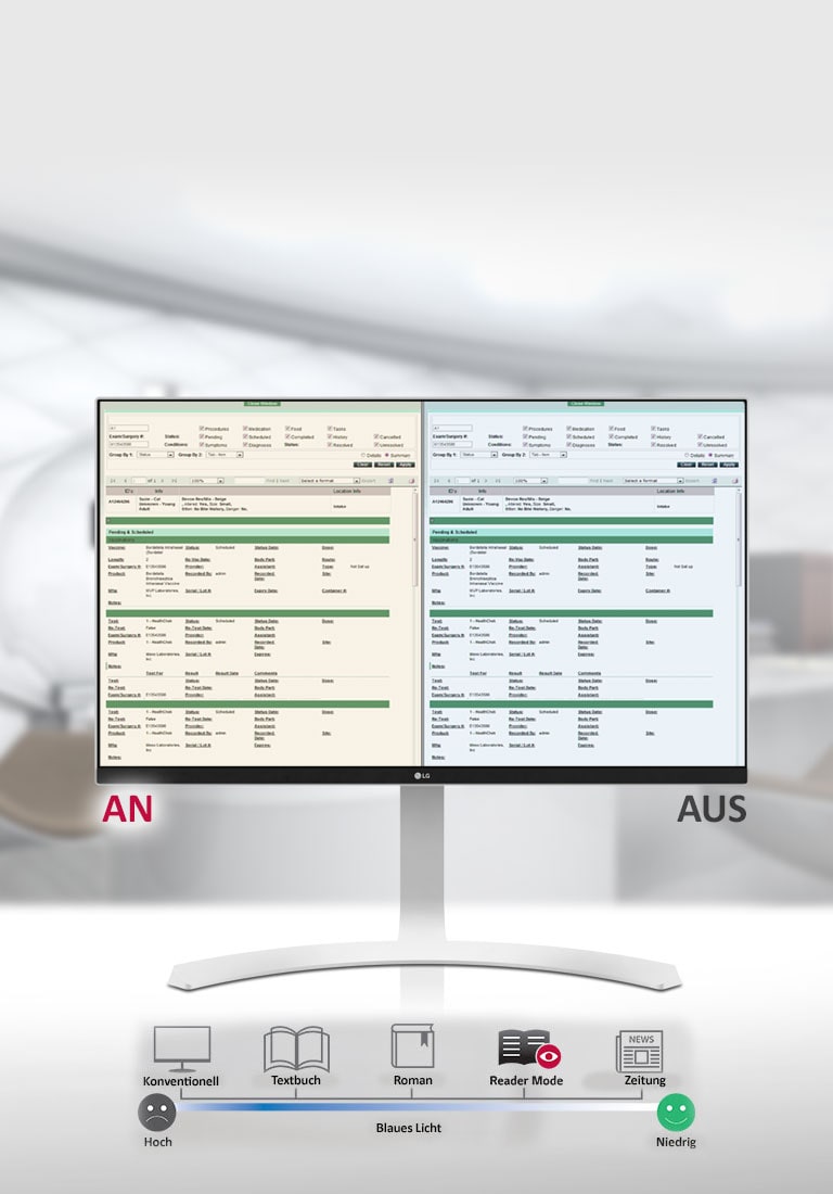 Der Reader Mode ist ideal für den Einsatz im Klinikalltag. Er reduziert die blauen Lichtanteile und schont so die Augen der Nutzer.