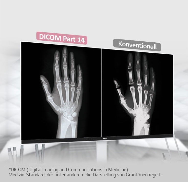 Um eine präzise und gleichbleibende Wiedergabe zu garantieren, misst und justiert LG jeden einzelnen Grauton im Laufe der Produktion des Monitors für eine DICOM Part 14 konforme Bildwiedergabe.