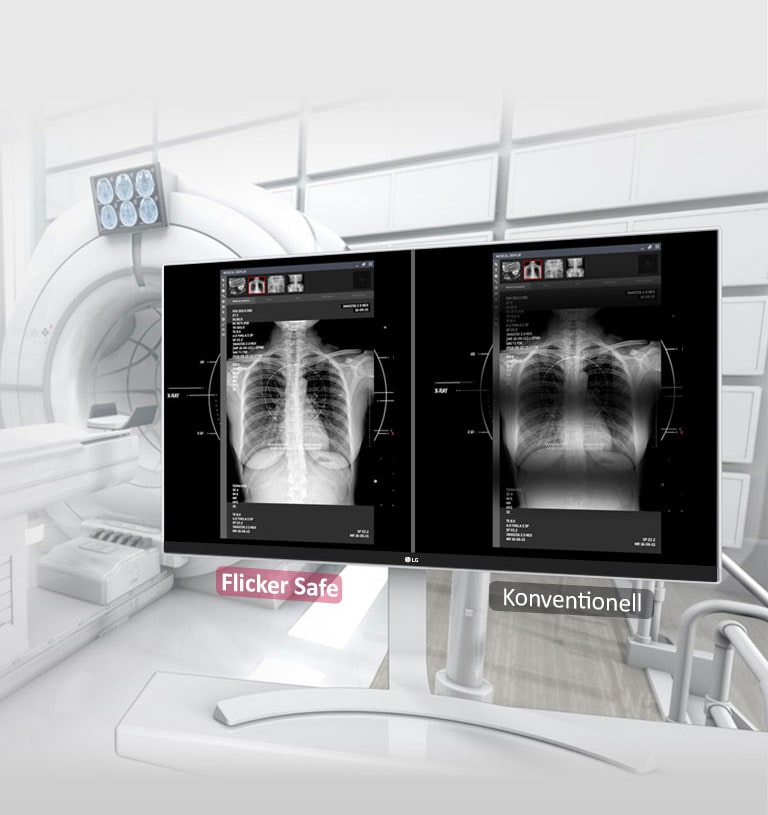 Die Flicker Safe Technologie sorgt für ermüdungsfreies Arbeiten, indem sie das Bildschirmflimmern reduziert. Gerade im Klinikalltag mit langen Schichten sorgt die Funktion für mehr Effizienz.