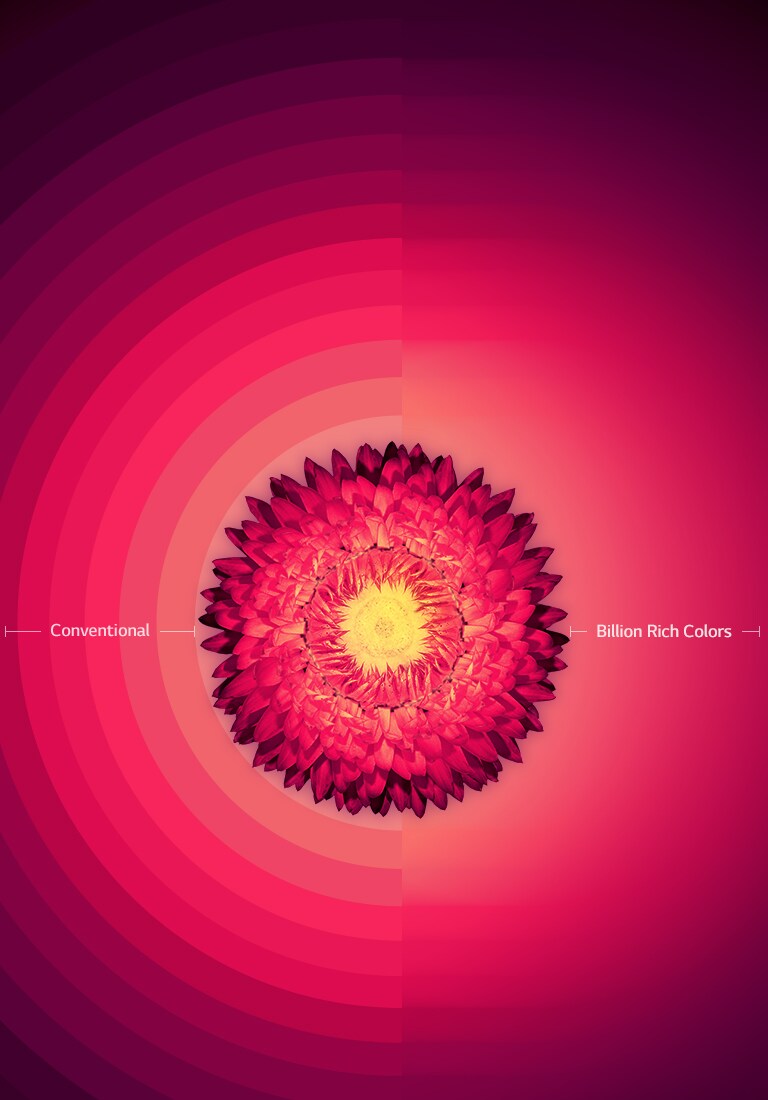 Das Billion Rich Colors-Feature teilt und verteilt Farben für eine präzisere Anpassung der ganzen Farbpalette. So kann der LG Super UHD-TV über eine Milliarde Farben darstellen.
